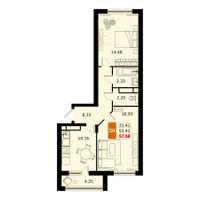 2-к. квартира, 57 м²
