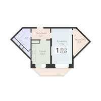 1-к. квартира, 45 м²
