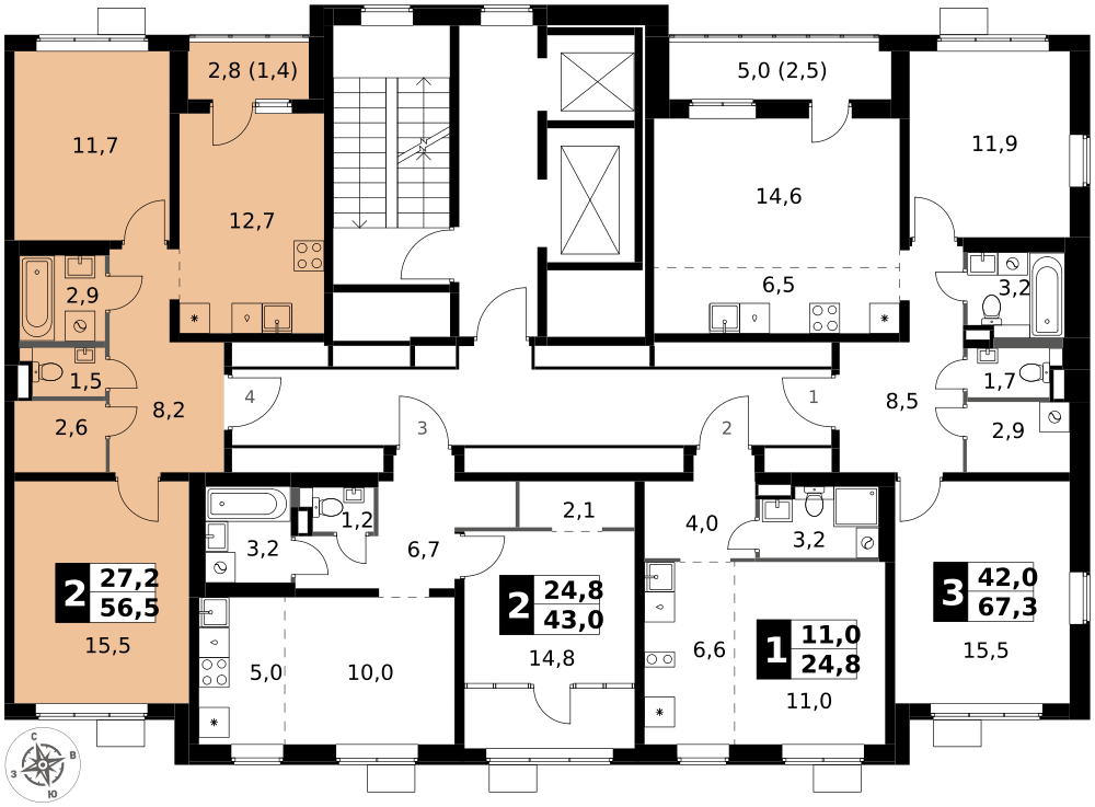 56 м²