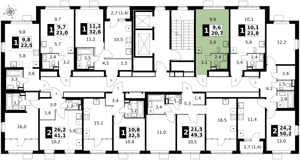 9 м²