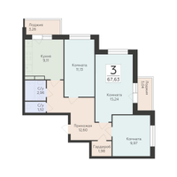 3-к. квартира, 67 м²