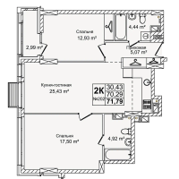 3-к. квартира, 71 м²