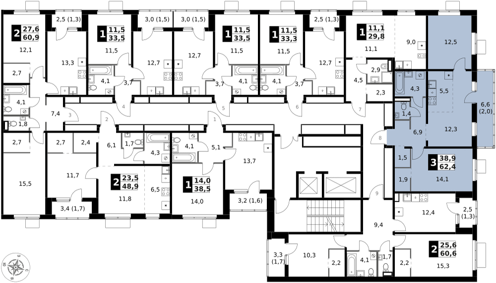 3-к. квартира, 62 м²