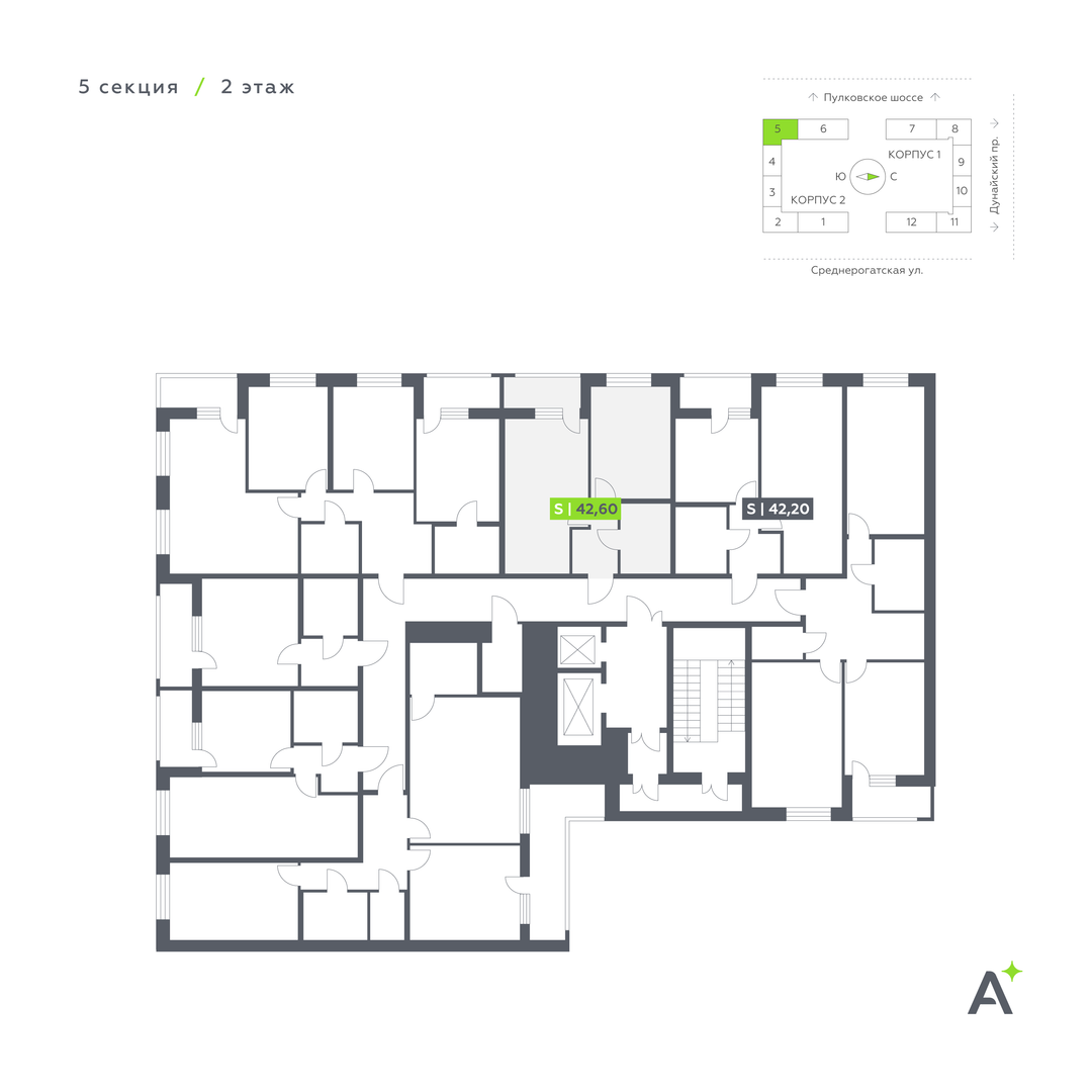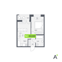 Студия, 42 м²