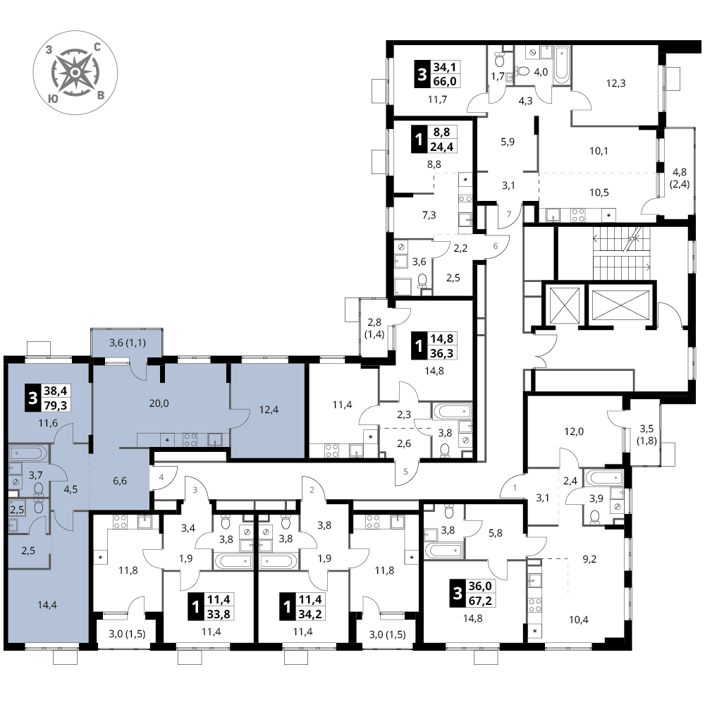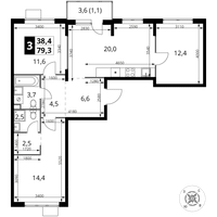 3-к. квартира, 79 м²