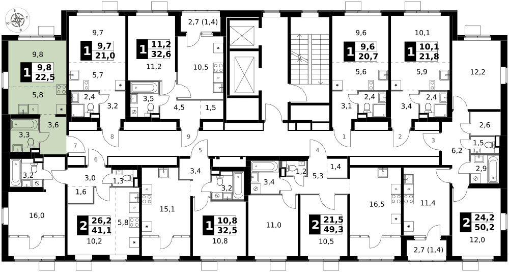 9 м²