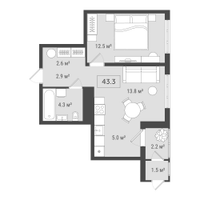 Студия, 43 м²