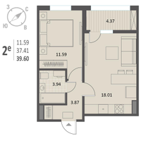 1-к. квартира, 39 м²
