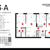 3-к. квартира, 66 м²
