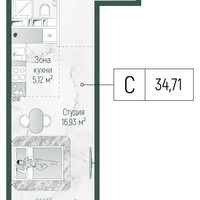 Студия, 36 м²