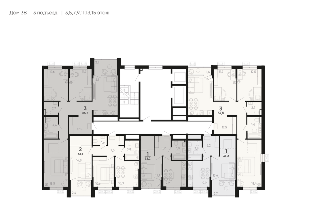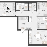 3-к. квартира, 85 м²