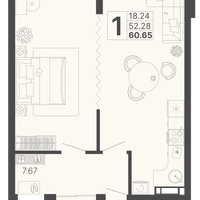 1-к. квартира, 60 м²