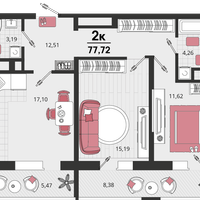 2-к. квартира, 77 м²