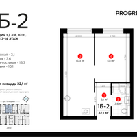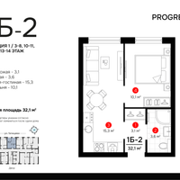 1-к. квартира, 32 м²
