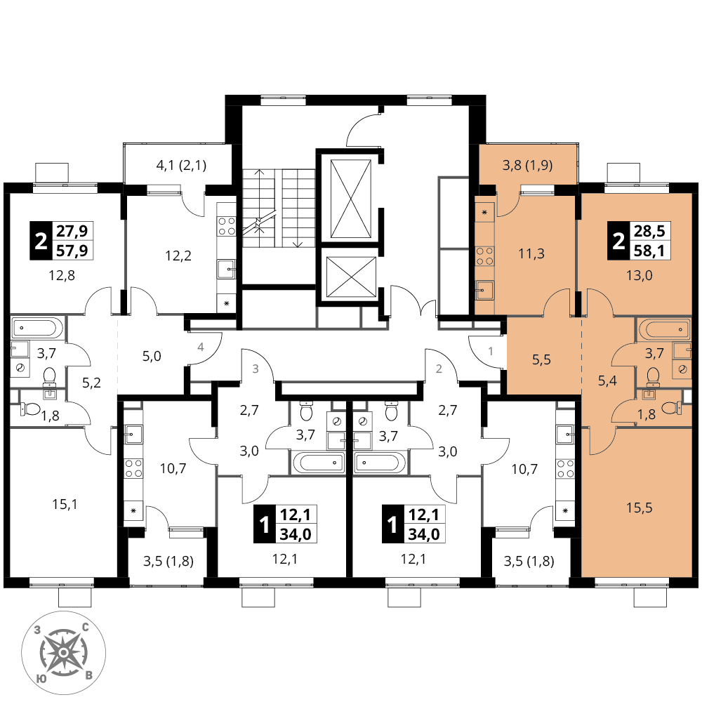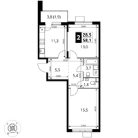 2-к. квартира, 58 м²