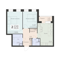 2-к. квартира, 59 м²