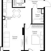 1-к. квартира, 57 м²