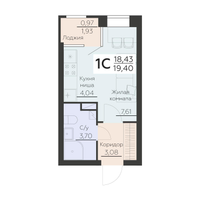 1-к. квартира, 19 м²