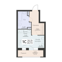 1-к. квартира, 28 м²