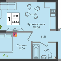 1-к. квартира, 43 м²
