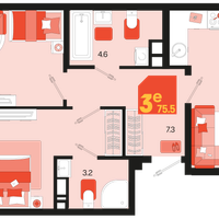 Студия, 75 м²