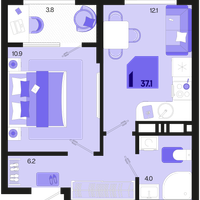 1-к. квартира, 37 м²