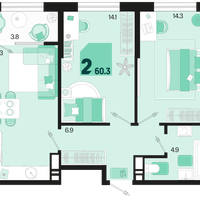2-к. квартира, 60 м²