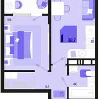 1-к. квартира, 38 м²