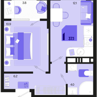 1-к. квартира, 37 м²
