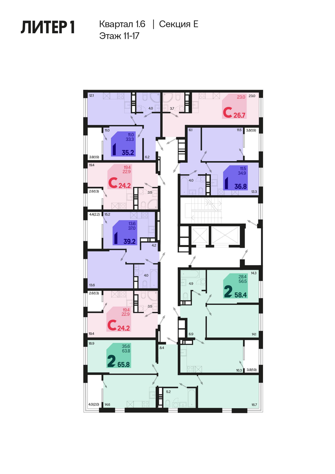 2-к. квартира, 67 м²