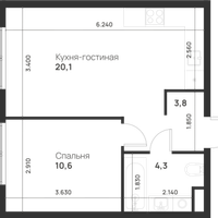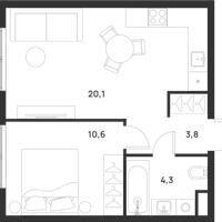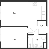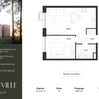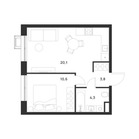1-к. квартира, 38 м²