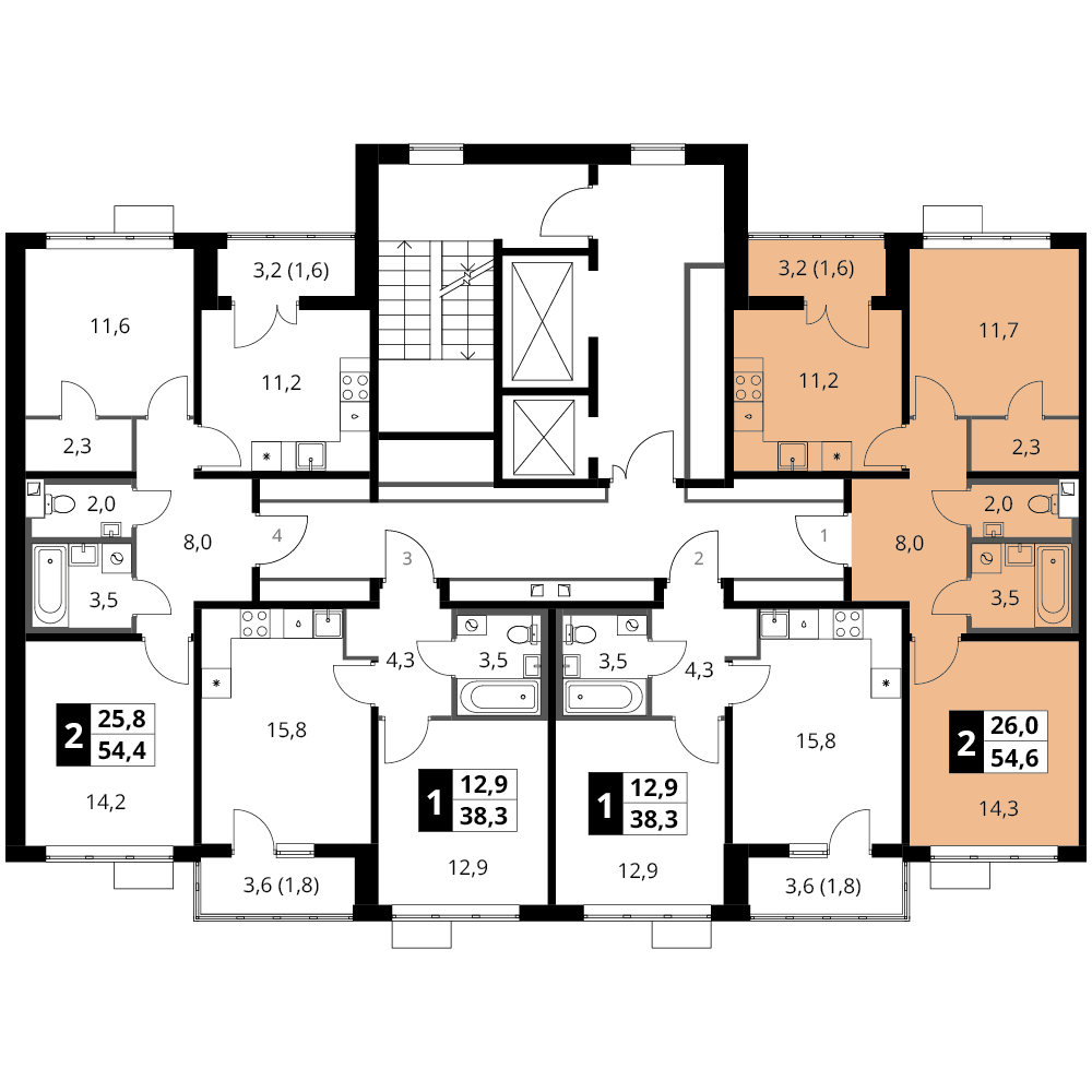 54 м²