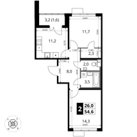 2-к. квартира, 54 м²
