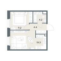 1-к. квартира, 39 м²
