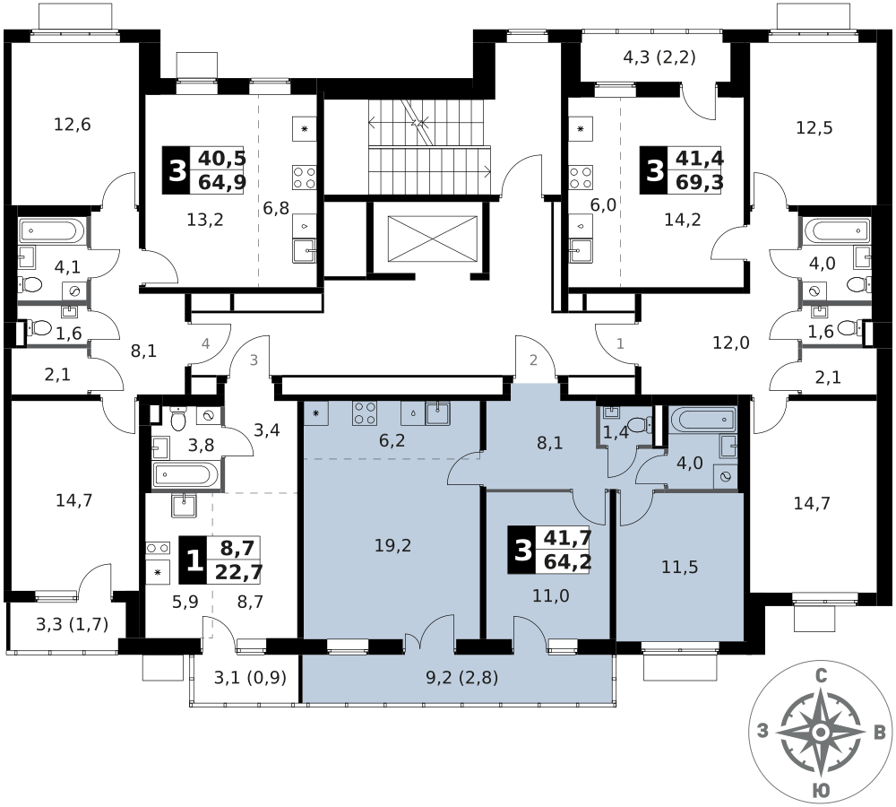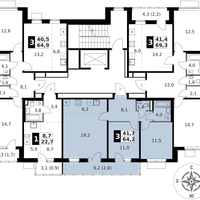 3-к. квартира, 64 м²