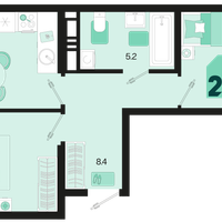 2-к. квартира, 67 м²