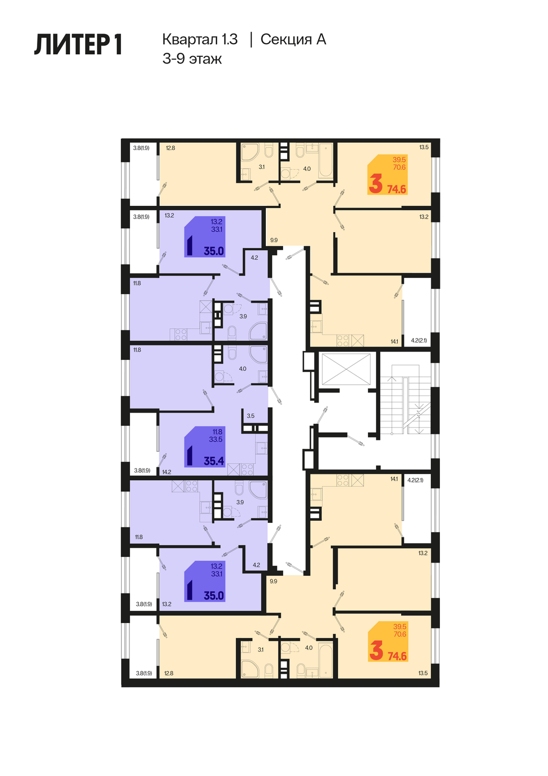 3-к. квартира, 78 м²