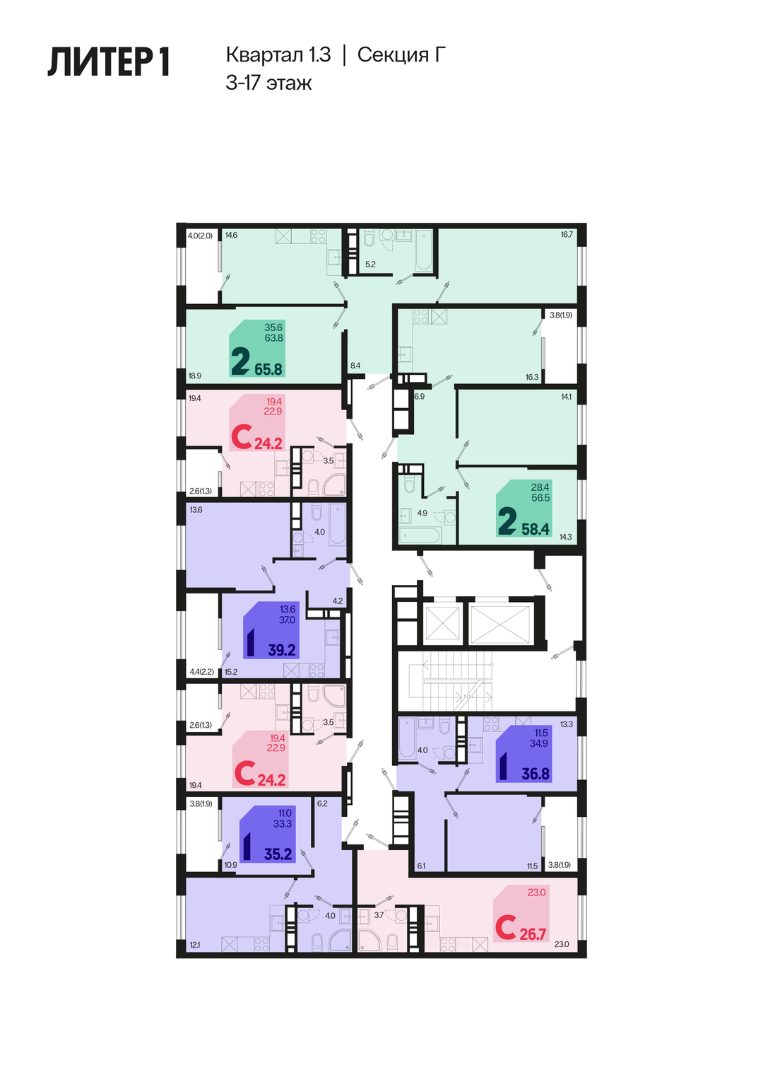 2-к. квартира, 67 м²