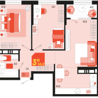 Студия, 66 м²