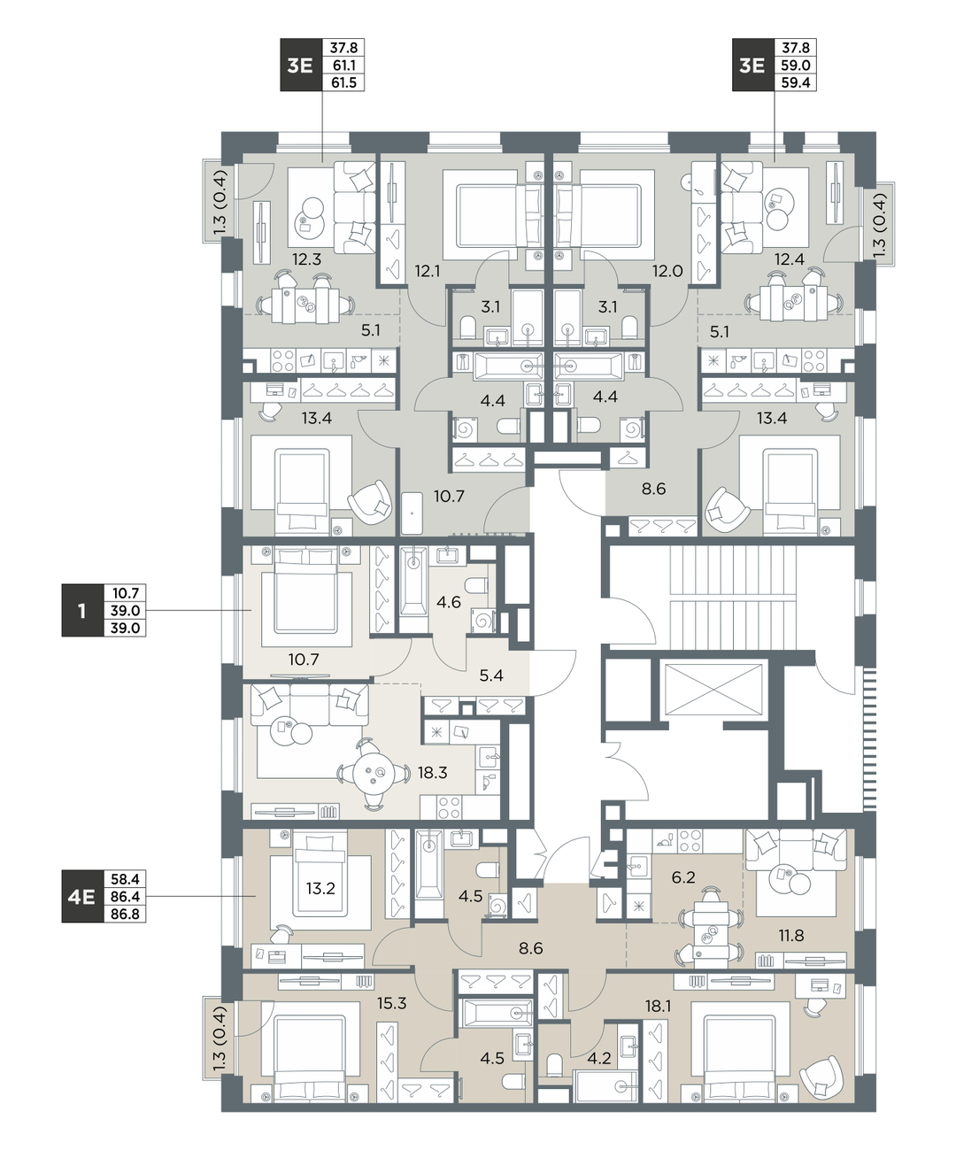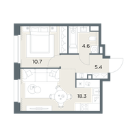 1-к. квартира, 39 м²