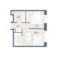 1-к. квартира, 34 м²