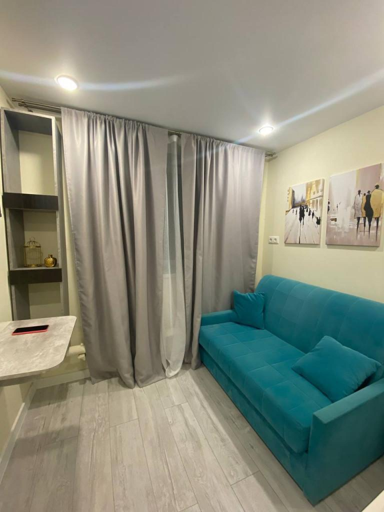 Уютная угловая студия 11 м² (жилая 4 м², кухня 4 м²) на 1-м (цокольном) этаже 9-этажного кирпичного дома 1959 г.п. по адресу Космодамианская набережная, 4/22А. Современный евроремонт, вся необходимая мебель, совмещенный санузел, окно на улицу. Въезжай и живи — или сдавай в аренду.