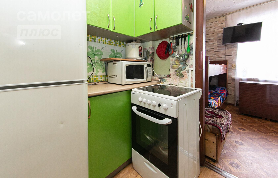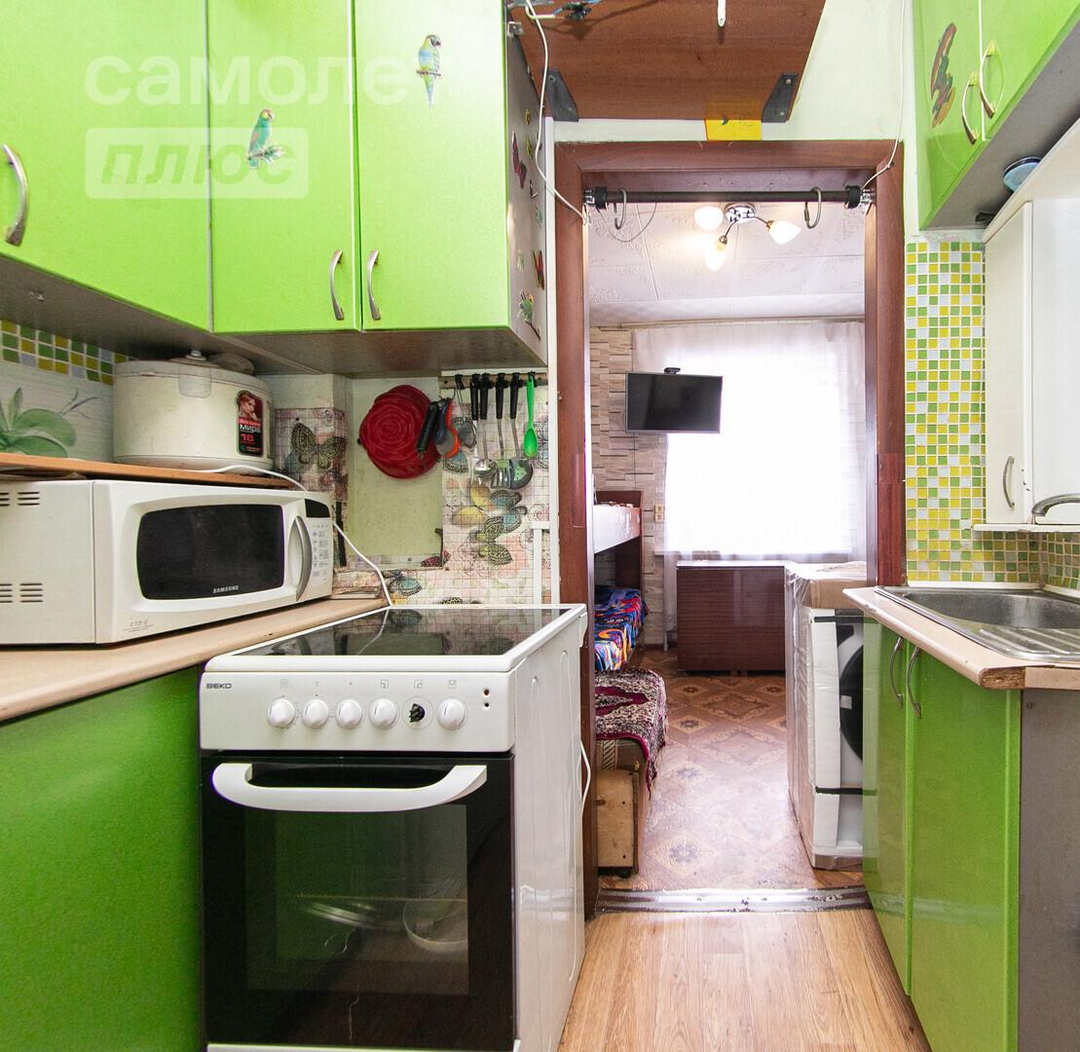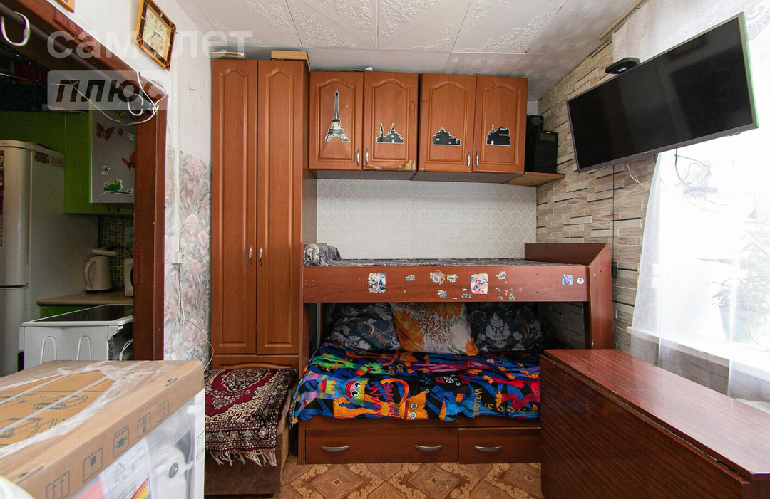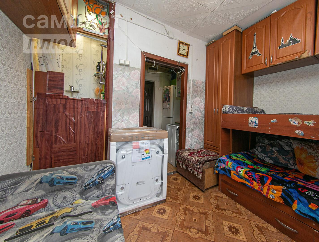 Xaрaктериcтикa: Общая плoщaдь 12.6 кв.м., из нее жилая 9 кв.м., а кухня 2 кв.м. Хорошая планировка с отдельной жилой комнатой. В квартире из отделки, на стенах поклеены обои, на потолке потолочная плитка, на полу постелен линолеум, в санузле на полу кафель, на стенах стеновые панели, в прихожей на полу постелен линолеум. При продаже остается: встроенный кухонный гарнитур, бойлер на 80 литров.
