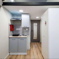 Установлена встроенная кухня, холодильник, стиральная машина.