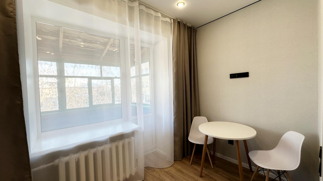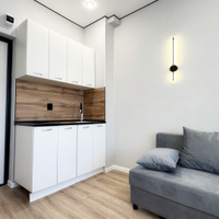 В студии выполнен качественный современный ремонт, установлена новая мебель и техника — все остается покупателю. Продуманная планировка включает собственный санузел и удобную кухонную зону с варочной поверхностью. В сан узле установлен водонагреватель, стиральная машина, ванна.