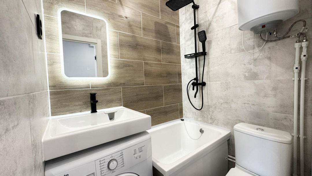 -Собственный санузел в плитке с гидроизоляцией и прямой канализацией