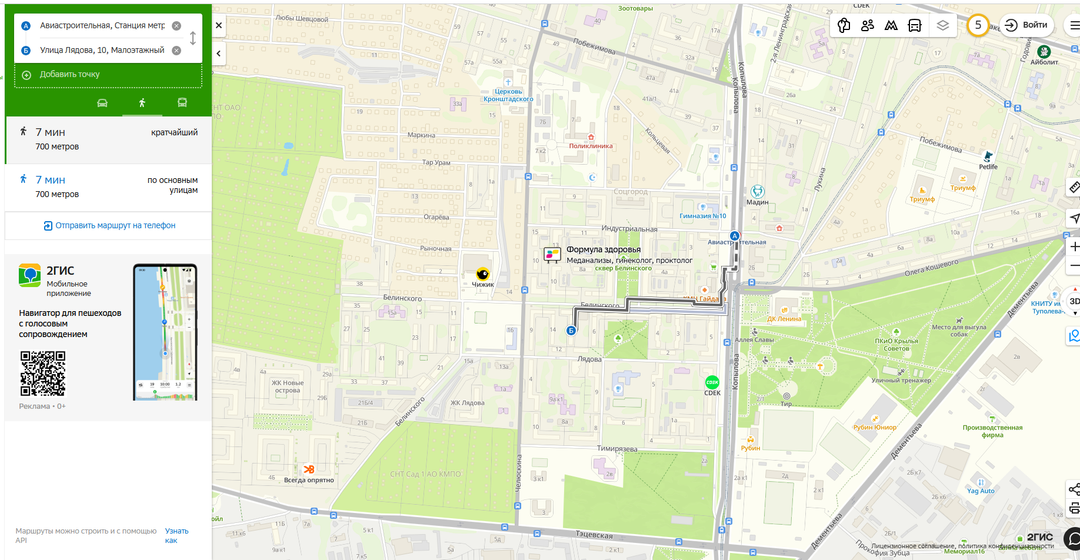 Дом расположен в 7 минутах (700м) от станции мтеро Авиастроительный.