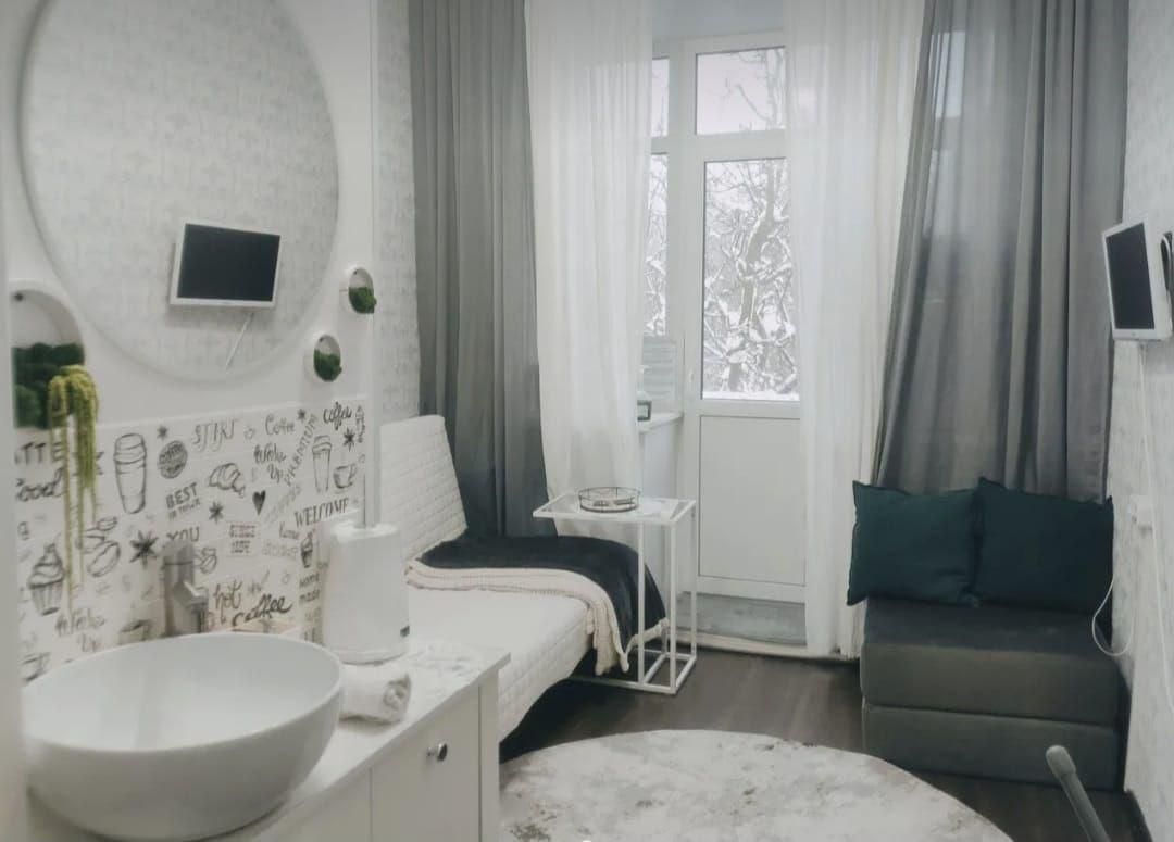 Соседи спокойные, порядочные, не конфликтные. По дополнительной договоренности в студии остаются: диван двуспальный раскладной ИКЕА, телевизор смарт, индукционная настольная плита, чайник.