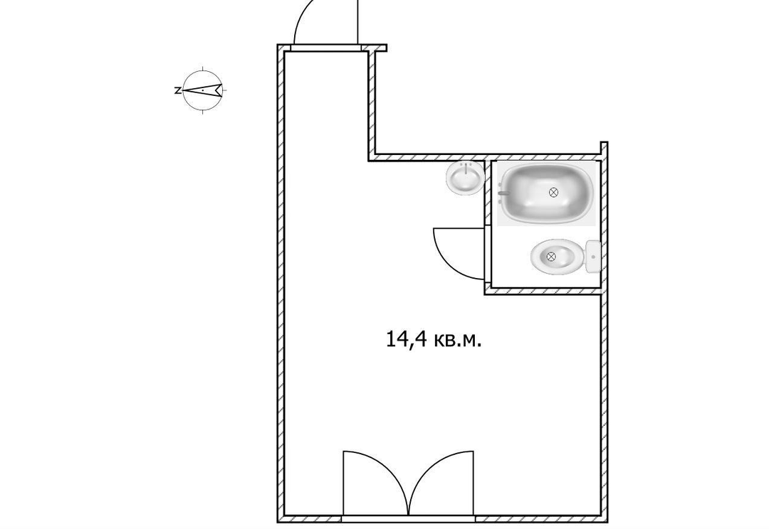 Уютная квартира-студия площадью 14.4 квадратных метров на первом этаже двухэтажного кирпичного дома, расположенного по адресу ул. Сибирская, д.99а.