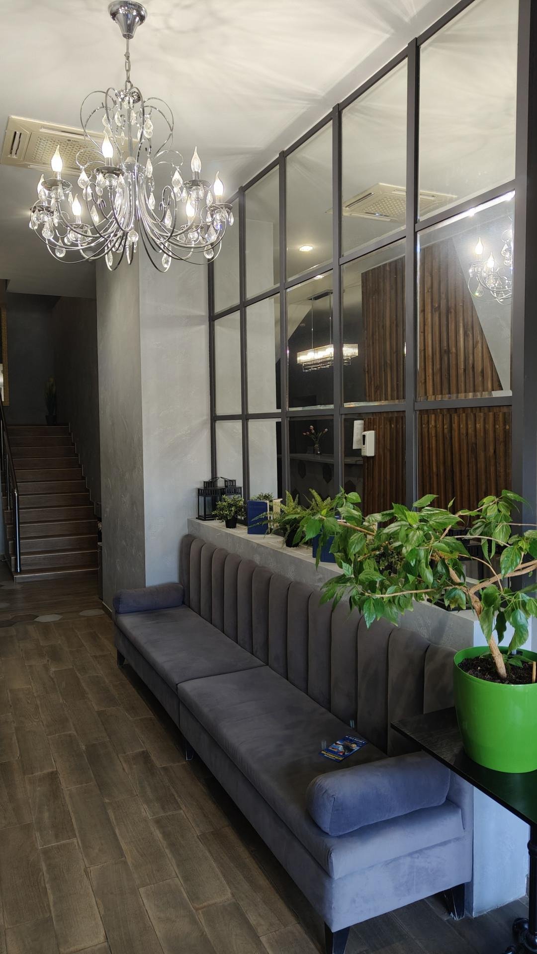 • Уютная зона отдыха с мягкой мебелью и телевизором, сплит-системой, холодильником, чайником.